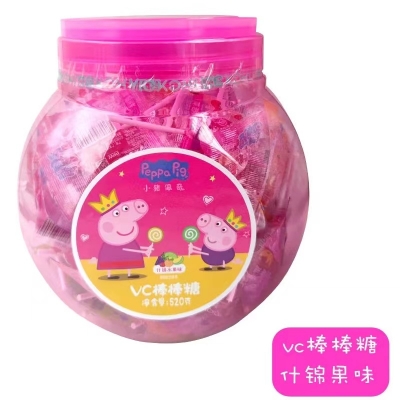 小猪佩奇桶装VC棒棒糖520克(1箱=6桶)